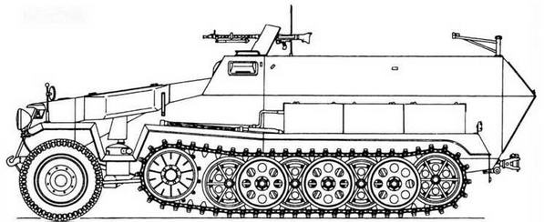 Вторую по величине экспортную партию полугусеничников получило движение "Свободная Франция", возглавляемое генералом Де Голлем: 176 машин М2/М2А1, 245 — M3/M3А1, 1196 — М5/М5А1 и 603 — М9/М9А1. Боевые машины этого типа имелись и в составе 1-й бразильской пехотной дивизии, воевавшей в Италии. Правда, их насчитывалось совсем немного: 8 единиц —М2/М2А1, 3 —M3/M3А1 и 20 — М5/М5А1. Небольшое количество "хаф-трэков" использовалось и в китайской танковой группе в Бирме. В годы Второй мировой войны несколько бронетранспортеров было передано вооруженным силам Чили и Мексики. В Советский Союз (по американским данным) было передано 1158 полугусеничников, в том числе: 342 единицы М2, 2 — М3, 401 — М5 и 413 — М9. По последним данным, опубликованным российскими исследователями, СССР получил 1200 полугусеничных бронетранспортеров, из которых в бронетанковые и механизированные войска Красной Армии было направлено всего 118. Все они поставлялись в 1942 году и распределялись между разведывательными подразделениями и командованием танковых корпусов и армий. Достаточно вспомнить обстоятельства гибели генерала Ватутина, например, чтобы понять — это вовсе не было ненужной роскошью. Основную же массу полугусеничных бронетранспортеров, полученных советской стороной, направили в артиллерию (главным образом, в истребительно-противотанковую), где их использовали для буксировки орудий, в том числе 85-мм зенитных пушек 52К образца 1939 г. и 100-мм противотанковых пушек БС-3 образца 1944 г. Полным аналогом бронетранспортера М3 в Вермахте был полугусеничник Sd.Kfz.251, так же, как и его американский "собрат", предназначенный для транспортировки на поле боя мотопехотного отделения. При несколько меньшей массе (8 т против 9,3 у М3) он имел более толстую броню — 15 мм в лобовой части корпуса и 8 мм в бортах (у М3 — 12,7 и 6,3 мм соответственно). Еще больше защищенность немецкой машины повышало расположение бортов корпуса под углом 35° к вертикали. Однако это расположение заметно сокращало объем десантного отделения, в котором 10 пехотинцам было тесно. Американская машина, хотя и имела в базовом варианте штатное вооружение из одного 7,62-мм пулемета, обычно вооружалась двумя, один из которых — крупнокалиберный. Без ущерба для размещения пехотинцев число пулеметов можно было довести до трех и даже четырех, обеспечив "хаф-трэку" подавляющее огневое превосходство над "хальбкеттенфарцойгом". В лучшую сторону у М3 отличались и динамические характеристики. В частности, из-за более высокой удельной мощности и ведущего переднего моста проходимость американской машины превышала таковую у немецкого бронетранспортера. Последний не выручали даже металлические гусеницы, которые, в отличие от резинометаллических, были прочнее и не имели склонности к проскальзыванию. Конструкция гусеничного движителя, предложенная американцами, оказалась проще немецкой, удобнее в эксплуатации и ремонте.