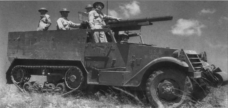Первая же встреча американцев с немцами состоялась в Северной Африке. В ноябре 1942 года в ходе операции "Торч" на Африканский континент высадились шесть отдельных батальонов истребителей танков, но только один из них — 601-й — был оснащен 37-мм САУ М6 и 75-мм САУ М3. Все остальные имели на вооружении более мощные и современные боевые машины М10. Совершенно очевидно, что в Северной Африке потерпели полный крах положения полевого устава истребительно-противотанковых частей, гласившие, в частности, что "подразделения истребителей танков предназначены для активных действий против бронетанковых сил противника". Для подобного рода действий М6 не подходил совершенно: ни вооружение, ни защищенность этой боевой машины для конца 1942 — начала 1943 года были уже неприемлемы. САУ М6 быстро изъяли из противотанковых подразделений и переклассифицировали в "носители вооружения" — Weapons Carrier. Часть машин попросту разоружили, превратив в обычные транспортные. При этом некоторое количество высвободившихся 37-мм пушек на тумбовых установках смонтировали в кузовах полугусеничных бронетранспортеров. В качестве противотанкового средства их не использовали, а вот огневую мощь моторизованной пехоты таким образом в определенной степени усилили. Что касается 75-мм САУ М3, то их североафриканский боевой дебют имел несколько больший успех, чем у М6. Правда, многие командиры трактовали положения устава слишком буквально, особенно в части агрессивности действий мобильных противотанковых частей. В результате М3 бросали в открытые контратаки против немецких танков, что приводило к тяжелым потерям. В марте 1943 года 601-й батальон истребителей танков поддерживал 1-ю американскую пехотную дивизию, атакованную 100 танками 10-й немецкой танковой дивизии близ Эль-Гутара. Были подбиты 30 вражеских танков, включая два "Тигра", но и 601-й батальон потерял 21 машину. При этом следует учитывать, что огонь по немцам вели не только самоходные противотанковые установки. Бой у Эль- Гутара стал апогеем карьеры САУ М3 в качестве истребителя танков. Вскоре 601-й батальон перевооружили самоходками М10, а М3 переоборудовали в обычные бронетранспортеры. Впрочем, для других целей эти машины продолжали использоваться вплоть до конца войны. Англичане, например, применяли их в Италии и Франции в 1944 году в подразделениях тяжелых бронеавтомобилей как средства огневой поддержки. Корпус морской пехоты США включил М3 в состав дивизионных рот тяжелого оружия и с успехом использовал их в боях на Иводзиме и Окинаве в 1945 году.