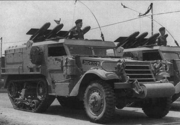 После 1949 года начались поставки "хаф-трэков" из США, Франции, Бельгии и Нидерландов. В основном это были М3, М5 и М9. В 1955 году командование ЦАХАЛа приняло решение вооружить ими две танковые бригады, по семь мотопехотных рот на полугусеничных бронетранспортерах в каждой. Все БТРы в качестве штатного вооружения получили пулемет в шаровой установке в лобовом листе корпуса справа от водителя. Бронетранспортеры М3 и М5 в Армии обороны Израиля имели обозначение М3 Мк.А. Все они оснащались двигателями IHC KED 450. Значительное количество М5 оборудовали в командирские машины М3 Мк.В, вооруженные крупнокалиберным пулеметом Browning и мощной радиостанцией. Машины М4 Мк.С представляли собой самоходный миномет и комплектовались двигателями White 160 АХ и 81 -мм минометами М1. Настоящим боевым крещением для всей этой техники стала война 1956 года. По окончании боевых действий поставки полугусеничников осуществлялись в основном из Франции и некоторых других стран Европы. На их базе создавались многочисленные образцы специального назначения — командирские, санитарные и ремонтно-эвакуационные. В 1965 году были созданы два типа противотанковых машин. Одна представляла собой самоходку, оснащенную бельгийской 90-мм пушкой Месаг, другая вооружалась французскими ПТУР SS.11. В 1965 году появился новый образец самоходного миномета М3 Mk.D, оснащенный 120-мм системой израильской фирмы Soltam. Все эти машины принимали активное участие в войне 1967 года. В конце 1960-х годов начались массовые поставки в Израиль гусеничных бронетранспортеров М113. Усилиями тогдашнего командующего бронетанковыми войсками ЦАХАЛа генерала И.Таля именно они к началу арабо-израильской войны 1973 года составляли костяк вооружения мотопехоты. Большинство же резервных соединений были по-прежнему оснащены "хаф-трэками". В Войне Судного дня принимали участие и разработанные в Израиле ЗСУ, чем-то напоминавшие американские Т10 времен Второй мировой. На модернизированной турели Maxson, получившей обозначение ТСМ-20, были смонтированы две автоматические 20-мм пушки Hispano-Suiza HS 404. В ходе войны 1973 года эти машины сбили 26 самолетов — 60% из значащихся на счету ПВО сухопутных частей. После получения из США ЗСУ М163 в 1980 году ТСМ-20 вывели в резерв. Туда же отправилось и большинство полугусеничных бронетранспортеров. При этом все они прошли модернизацию. На них установили заимствованный у БТР М113 двигатель 6V53 и трансмиссию Allison TX-100N. Внешне эти машины легко отличить по сплошному бронелисту (без жалюзи) перед радиатором. Некоторое количество машин продолжало использоваться в войсках для выполнения узкоспециальных функций, в основном в ПВО, инженерных частях и подразделениях связи. А в частях израильской военной полиции "хаф-трэки" несли службу еще в середине 1990-х годов.