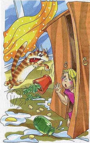 Мы с мамой и Веркой приехали в гости к тёте Марианне: это мамина двоюродная сестра. Она живёт в Москве в большой-пребольшой квартире. Одна-одинёшенька. Если не считать глупого кота Григория: тётя Марианна его для мышей завела. То есть наоборот: от мышей… В одной комнате тётя поселила нас. А в другую, свою, строго-настрого запретила заходить! И конечно, первым же утром, как только тётя ушла на работу, мы с Веркой сразу побежали в её комнату. Потому что если нельзя заходить — значит, там что-то очень интересное! Там и вправду было много интересного. Шкаф. Стол. Гитара. Страшная деревянная морда на стенке. Чучело совы. Чёрно-белая фотография тёти Марианны в молодости с каким-то усатым дядькой и подпись под дядькой: «Маруся, люблю!». Но самым интересным было стеклянное яйцо на столе. Оно было раскрашено в яркие-яркие краски, такие яркие, что даже глаза резало. Весёлое, сверкающее, красно-сине-зелёное! Мы сразу поняли, что тётя Марианна боялась именно за это яйцо. Потому и нас в комнату не пускала. Будто мы маленькие, не понимаем, что с такими вещами надо осторожно обращаться! Обидно даже! Мы только немножко постояли и повосхищались этим чудесным яйцом. А как оно упало со стола и разбилось — честное слово, понятия не имеем! Это ещё повезло, что я очень сметливый (так мне все учителя говорят). Я попросил: — Сбегай, Верка, на кухню. Возьми у тёти Марианны из холодильника яйцо. Хоть и не стеклянное, а лучше, чем ничего! А я пока краски поищу. Раскрасим яйцо, как было, тётя и не заметит! Верка побежала за яйцом, а я стал искать краски. На столе нет. На шкафу нет. В гитаре — пусто. Деревянная морда тоже ничего про краски не знает. И чучело совы. И усатый дядька на фотографии… Всю комнату вверх дном перевернул. Но всё-таки нашёл, потому что я очень находчивый. Так все учителя говорят. Краски лежали в ящике стола. Большая красивая коробка. Вот бы мне такую! А тут и Верка прибежала. С яйцом, но грустная. Чуть не плачет. Она, оказывается, пока яйцо в холодильнике искала, пакет опрокинула. Я спрашиваю: — Что за пакет? Она тянет: — С тра-а-авкой… Пахнет ещё так невкусно… Я говорю: — Ну и ладно! Чего ревёшь, глупая? Главное — яйцо нашлось! Давай сюда скорей, будем красить! Набрал я в ванной воды для красок. А рассыпанная травка оказалась валерьянкой. И кот Григорий очень этому обрадовался. Мы ещё даже красить не начали, а он из кухни как заорёт весело! Ну, думаю, сейчас мама проснётся! Сунул Верке яйцо и краски и побежал на кухню Григория успокаивать. Но я очень торопился и потому наступил прямо на разбитое яйцо. Хоть и в тапочках, а больно! Заскакал по коридору. А Григорий, наверное, подумал, что я мышь. Как выпрыгнет на меня из кухни, как завопит радостно! А прыгал он, судя по всему, с посудного шкафа, потому что слышу: «„Бдыжжь!“ Бдыжжь! Дзыннь! Бдыжжь! Дзыннь! Дзыннь!»… Грохот! Тут мама в соседней комнате почему-то проснулась: — Дети, у вас всё хорошо? Я Григория отдираю, а сам кричу в ответ: — Да, мамочка, всё в порядке! Действительно: ничего же не случилось! Правда, Верка второе яйцо разбила и краски уронила. А потом ещё воду разлила. Потому что очень шума испугалась. Ну девчонка, что с неё взять? Но мама не поверила, что у нас всё хорошо, встала и побежала выяснять, в чём дело. И конечно, поскользнулась на разлитой воде и попала ногой в краски. И стала кричать: «Кто это сделал?!» Верка испугалас