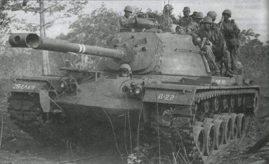 Высокую эффективность бронекавалерийские подразделения продемонстрировали при отражении серии хорошо спланированных ударов отрядов войск НФО и регулярных частей армии ДРВ в начале 1968 года, известных как "Новогоднее наступление". Нападения на американцев и правительственные войска происходили по всей территории Южного Вьетнама, особенно тяжелыми были бои в городах Сайгон, Лонгвинь, Бьен Хоа, в районе авиабазы Тан Сон Нат. Высокая тактическая мобильность гусеничной техники позволяла быстро перебрасывать танки и САУ на угрожаемые участки для оказания огневой поддержки обороняющимся. Американцы быстро опомнились от внезапного нападения и начали постепенно выдавливать противника из городов и военных баз. Городские улицы — не лучшее место для использования танков, к тому же в начале 1968 года вьетнамцы впервые в больших количествах стали применять ручные гранатометы РПГ-7. Особенно велики были потери танков М48А1 с бензиновыми двигателями. Эти машины, наряду с "шериданами", пользовались у американских солдат, воевавших во Вьетнаме, дурной славой — были случаи отказов танкистов идти на них в бой. Единственной крупной наступательной операцией США в Индокитае, в которой заметную роль сыграли танки, стало вторжение в Камбоджу. По ее территории проходили коммуникации, связывавшие ДРВ с Южным Вьетнамом и носившие название "тропа Хо Ши Мина". После неудачного (с военной, но не с политической точки зрения) "Новогоднего наступления" отряды партизан отошли на камбоджийскую территорию. Всю вторую половину 1968 года и первую 1969-го небольшие хорошо вооруженные группы партизан переходили камбоджийско-вьетнамскую границу и нападали на конвои грузовых автомобилей и гарнизоны американских войск в Южном Вьетнаме.