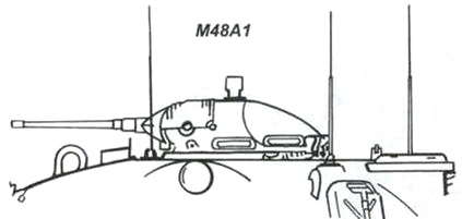 Вид свержу на М48А3. Хорошо видны командирская башенка и новая конструкция башенной корзины