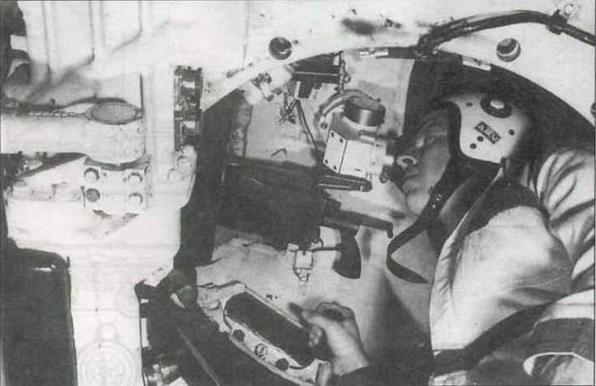 Командир на своем рабочем месте— в башенке танка М48А3 — осматривает местность через перископический прибор наблюдения