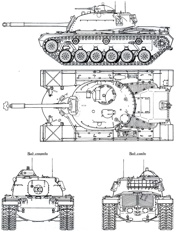 В октябре 1950 года специалисты Детройтского арсенала начали разработку среднего танка, призванного прийти на смену М47. Проект базировался на конструкции тяжелой опытной машины Т43. Его особенностью стал абсолютно новый цельнолитой корпус обтекаемой лодкообразной формы, в поперечном сечении близкий к овалу. Считалась, что такая форма корпуса при равной толщине брони обеспечит лучшую баллистическую и противоминную защиту, нежели традиционные конструкции. Инженерам из Детройта впору было присваивать звание «ударников капиталистического труда» — проект среднего танка они закончили к декабрю 1950 года, через два месяца после начала работы. Военные, изучив чертежи, приняли решение заказать фирме «Крайслер Корпорэйшн» шесть экспериментальных, так называемых «пилотных» танков Т48. Все опытные машины предназначались корпусу морской пехоты США. На изготовление танка ушло гораздо больше времени, чем на создание проекта. Первый прототип вышел с завода «Крайслер» почти через год, однако такой срок для полномасштабной разработки и изготовления нового образца боевой машины считается совсем небольшим. Т48 продолжил эволюционную линию американского танкостроения, являясь дальнейшим развитием конструкций танков М46 и М47 («Бронеколлекция», № 5, 2003). Машина была спроектирована по классической схеме: отделение управления располагалось в передней части корпуса, боевое — в средней, моторнотрансмиссионное — в корме. Последнее отделялось от остальных противопожарной перегородкой. Силовая установка — четырехтактный 12-цилиндровый карбюраторный двигатель «Теледайн Континентал» AV-1970-5B, а также трансмиссия «Аллисон» CD-850 достались новому среднему танку от предшественников и существенных изменений не имели. Сдвоенные опорные катки также перешли к Т48 от М46 и М47. А вот литой лодкообразный корпус машины с местными уширениями под башню представляли собой абсолютно новую конструкцию. Диаметр башенного погона в свету был аналогичен таковому у тяжелого танка Т43, что позволяло в перспективе оснастить танк башней с более мощным вооружением. Основное вооружение Т48 — 90-мм пушка Т39, вспомогательное — спаренный пулемет калибра 7,62 мм, установленный в маске слева от орудия, и 12,7-мм зенитный пулемет с дистанционным управлением, смонтированный на командирской башенке. Ствол орудия имел легкосъемный лейнер. Орудие оснащалось эжектором для удаления пороховых газов и дульным тормозом. Количество снарядов в боеукладке уменьшилось с 71 (у М47) до 60 (на Т48), однако выстрелы удалось расположить более удобно для заряжающего. Боекомплект размещался в выступающих бортовых нишах корпуса и в башне, вдоль левого борта. Разворот башни и наведение пушки в вертикальной плоскости осуществлялись гидроприводами, однако была предусмотрена и резервная ручная система наведения оружия. Число членов экипажа, по сравнению с М47, уменьшилось до четырех, исключили стрелка-радиста; в отделении управления танка М48 размещался один человек — механик-водитель. Перед люком механика-водителя монтировались три перископа, автоматически убиравшиеся заподлицо с крышей корпуса при открывании люка, крышка которого сдвигалась вперед- вправо. В башне находились рабочие места командира, наводчика (справа от орудия) и заряжающего (слева). Через люк командирской башенки проникали на свои ме