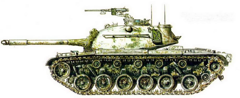 На танках модели М48А3 была предпринята попытка подтянуть возможности «Паттона» к характеристикам советского Т-54. И хотя полноценным ответом на появление в Европе новой грозной машины стал М60, тем не менее запуск его в серию не означал завершения работ по совершенствованию М48. На М60 американцы, наконец-то, установили дизельный двигатель, избавившись от едва ли не главного недостатка танков более ранних типов — малого запаса хода и повышенной пожароопасности. Общность конструкции М48 и М60 давала возможность разместить дизель и на «Паттоне». Первый из шести «пилотных» М48 с дизелями передали на Абердинский полигон для испытаний в апреле 1960 года. Танк получил индекс М48А1Е1, на нем была установлена моторно-трансмиссионная группа от М60: дизельный двигатель AVDS-1790-2 и трансмиссия «Аллисон» CD-850-6. М60 обладал еще одним важным преимуществом перед М48 — 105-мм пушкой, более мощной, чем 90-мм орудие Т39. Ее-то и установили в башню М48А1Е1, вместе со спаренным 12,7-мм пулеметом (на М48 в маске пушки стоял пулемет калибра 7,62 мм). Повышению огневой мощи танка способствовало и применение более совершенной системы управления огнем, также заимствованной от М60. В состав СУО входили: оптический дальномер, работавший на принципе совмещения изображения, телескопический прицел и баллистический вычислитель. Испытания показали, что по боевой эффективности М48А1Е1 превосходит все модификации «Паттона» и сравним с М60. Армия считала необходимым довести до уровня М48А1Е1 примерно 600 находившихся на вооружении танков М48А1, однако в технику вмешалась экономика. На складах имелись огромные запасы 90-мм снарядов, которые в случае установки 105-мм орудий оказались бы ненужными, кроме того, замена основного вооружения танков обходилась казне «в копеечку» из-за необходимости изготовления новых орудий, и опять же возникал вопрос: что делать с 90-мм пушками? Пришлось идти на компромисс — внедрить все усовершенствования, оставив 90-мм пушки. Очередной вариант «Паттона» получил индекс М48А3. Модернизация М48А1 началась в ремонтных центрах армии США Эннистон и Ред Ривер в феврале 1963 года. Всего по заказу армии переоборудование в модификацию М48А3 прошло примерно 600 танков модели А1, еще 419 машин было модернизировано по заказу корпуса морской пехоты. Наиболее заметным внешним отличием М48А3 стали коробки с воздушными фильтрами, установленные на крыльях по бокам от крыши МТО. Кроме того, на армейские танки ставили по два дополнительных поддерживающих ролика, вновь доведя их число до пяти на борт. Установка дизеля вкупе с использованием топливных баков большей емкости позволила увеличить запас хода до 480 км. В ходе выполнения программы модернизации в конструкцию вносились изменения с учетом опыта использования танков во Вьетнаме, в частности были установлены новые тормоза, люк командирской башенки и несколько измененная башенная корзина.