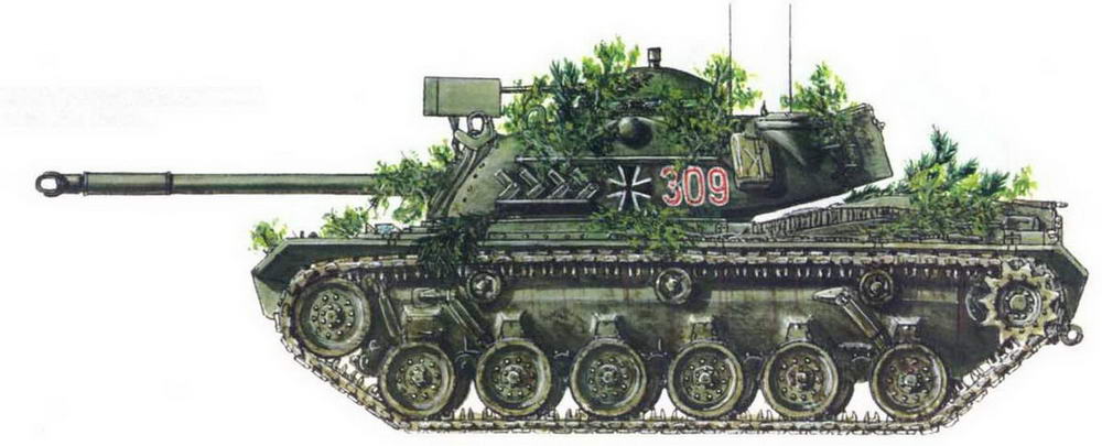 Танки М48 в большом количестве состояли на вооружении Бундесвера. Наряду с "леопардами",они являлись основой танкового парка сухопутных войск ФРГ в первой половине 1970-х годов. Внешне "паттоны" Бундесвера отличались от американских наличием больших прямоугольных прожекторов фирмы "AEG-Телефункен" на масках пушек и ящиками, наваренными на кормовые башенные корзины, для имущества членов экипажа, а также смонтированными по бортам башни двумя блоками из четырех дымовых гранатометов немецкой конструкции. Еще одним внешним признаком западногерманских М48 стали установленные на корпусе танка зеркала заднего вида. Состояние танкового парка ФРГ в тот период чем- то напоминало американские проблемы. Немцы потеряли время на проекте МВТ70, а затем на разного рода совместных программах по созданию "Абрамса". Как следствие — поступление перспективного основного боевого танка в подразделения Бундесвера задержалось. Нишу между "Леопардом-1" и "Леопардом-2" заполнил M48A2GA2.