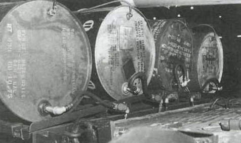 Закрепленная на корме танка консольная платформа с четырьмя 200-л топливными бочками позволила увеличить запас хода, но была крайне уязвимой для огня даже легкого стрелкового оружия