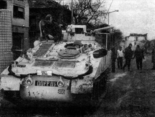 Бронетранспортер «Спартан» полка легких драгун на блок-посту войск ООН в Боснии. Март 1994 года