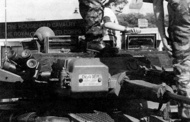 Бронетранспортер «Спартан» одного из армейских подразделений во время занятий по отработке совместных действий с полицией (в центре). Легкий танк «Скорпион», подготовленный к переброске в район Персидского залива. 1990 год