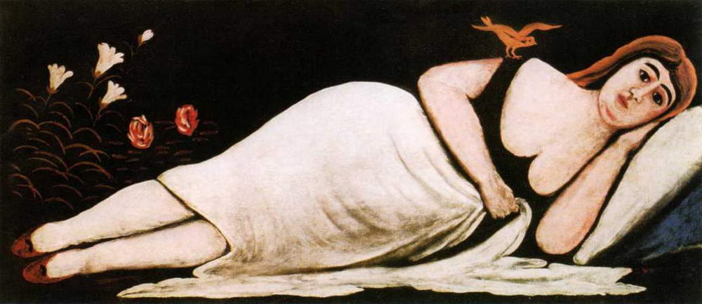 Так пересказывал легенду Паустовский спустя несколько десятков лет после того, как увидел произведения Пиросмани. А вот когда он в 1931 году по более свежим впечатлениям опубликовал в журнале Бригада художников очерк о грузинском самоучке, он называл Маргариту ничтожной актриской: "Маргарита была рыжей, грубой и жадной женщиной, помыкавшей Пиросманом. Она поносила его и считала идиотом". Скрупулезный биограф Пиросманашвили Эраст Кузнецов упоминает о свидетельстве, согласно которому рассказ о любви Пиросманашвили и возах цветов - ни что иное, как одна из импровизаций режиссера Котэ Марджанишвили, рассказанная им в кругу друзей. Кузнецов говорит, что о Маргарите рассказывают все авторы, писавшие о Пиросмани, но никто из тех, кто был с ним действительно знаком. Произведения Пиросмани сами рождают образ художника, который их написал. И этот образ, который может быть описан только языком поэзии или народной легенды, имеет больше права на жизнь, нежели тот, что соответствует крупицам подлинной биографии. Диптих Ортачальские красавицы состоит из двух вытянутых по горизонтали панно, на каждом из которых изображена лежащая женщина. Произведение было создано в период, когда Пиросмани жил у Титичева, владельца увеселительного сада "Эльдорадо", находившегося на берегу Куры в пригородном районе Ортачала. Картины написаны по заказу владельца сада, где немалую роль в развлечениях посетителей играли местные путаны. Там же явились на свет красавица с веером в руке, дворник,кормилица, уже упоминавшийся жираф, а также черный лев. Образы ортачальских красавиц лишены примет порока, и они вовсе не молоды и не легкомысленны. Эти фигуры обладают той же плотностью и тяжеловесностью, что и изображение Маргариты. Они сдержанны, серьезны. Облик их имперсонален. Эти лежащие "венеры", своего рода вывеска продажи любви, - "распивочно и на вынос".