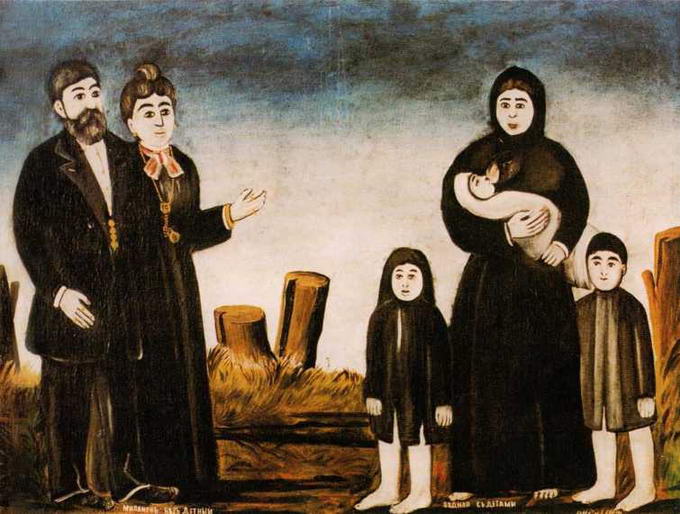 Расскажем же вкратце то, что известно о жизни художника. Нико Пиросманашвили родился в 1862 году в селе Мирзаани, кахетинском селе, расположенном в восточной части Грузии. Отец Нико - Аслан Пиросманашвили вскоре после его рождения переехал в село Шулавери. Здесь он нашел работу в имении "Иверия", принадлежавшему вдове "огрузинившегося" армянина Алаверди Калантарова - Опросные. Далее, как сообщают биографы, на семью Пиросманашвили посыпались несчастья - умер старший сын Георгий, потом в 1870 году - отец Аслан. Потом умерла мать. Старшая дочь Мариам, которая была замужем, вернулась в Кахетию. Остались двое младших: сестра Пепуца и брат Нико. Пепуцу забрали к себе родственники из Мирзаани. А Нико остался жить у Калантаровых. У Эпросине было три дочери и три сына. Вначале Нико жил с ними в Шулавери. Потом один из братьев Калантаровых (Георгий) взял его с собой в Тифлис. Нико к этому времени было лет двенадцать. В доме Калантаровых, возможно с перерывами, Нико провел около пятнадцати лет. Крестьянской мальчик оказался в атмосфере богатой и просвещенной тифлисской семьи. Воспитанника брали с собой в церковь и в оперу, научили читать по-грузински и по-русски. Он много рисовал, и его рисунками украшали комнаты в доме. Сегодня историю детства будущего художника можно пересказать, как главу из романа Диккенса в грузинском варианте. В жизни сироты (вспомните Оливера Твиста) все не так, как у обычных людей. Все более контрастно - добро и зло, белое и черное. Но все же озадачивает, почему семейство Калантаровых не пристроило Нико учиться какому-нибудь ремеслу. Он был уже великовозрастным юнцом, а все жил при доме, играл с детьми. Вспоминают резкие перепады его настроения, впечатление человека "не от мира сего", которое он производил уже в детстве.