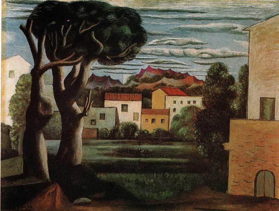 На иллюстрации вверху представлен „Пейзаж с живым и мертвым деревом“ (1919, Токио, Музей искусств Бриджстоуна).