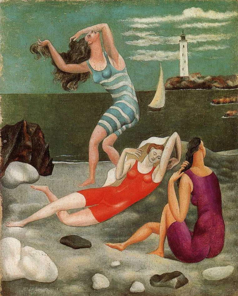 Сюжеты с участием женщин, изображенных на берегу моря, так часто появляются в творчестве Сезанна, что Пикассо, всю жизнь испытывавший влияние этого художника, пишет свою версию этой темы, полную гармонии и спокойной ясности: „Купальщицы“ (1918, Париж, Музей Пикассо).