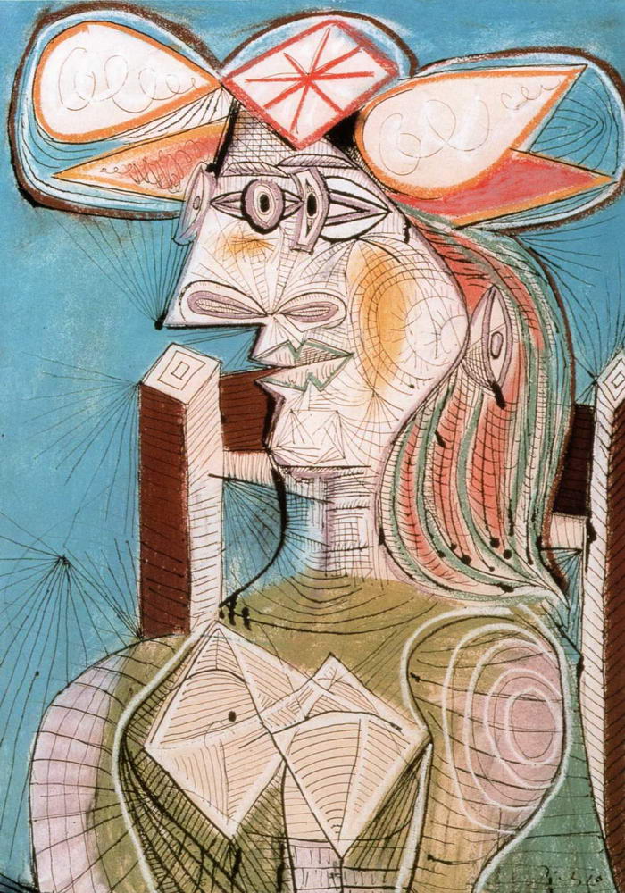 Исключительный результат увлечения Пикассо сюрреализмом открывается нам в серии женских голов, к которой принадлежит также „Сидящая женщина“ (Дора Маар) (см. след. стр.).