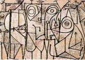 В 1917 году Пикассо создает задник к балету «Парад», в постановке которого примут участие несколько основоположников послевоенной культуры (хореограф Дягилев, поэт Кокто, композитор Сати). Внизу слева расположен эскиз занавеса к балету «Парад» (1917, Париж, Музей Пикассо)
