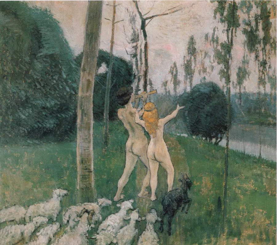 Непосредственное знакомство с французскими импрессионистами естественно укрепило уверенность Борисова-Мусатова в верности того пути, который он начал еще в Маках в саду и Майских цветах. Но, когда Борисов-Мусатов попал в Париж, самым мощным направлением в художественной жизни Франции был символизм, воплощавший себя в изобразительном искусстве в стилистике модерна. Борисов-Мусатов был буквально очарован монументальным искусством провозвестника этого стиля Пьера Пюви де Шаванна, познакомился он и с творчеством таких его представителей, как мастера группы «Наби», и, думается, с произведениями Поля Гогена. И, наконец, японское искусство, которым были увлечены и «набиды», и Гоген, в полной мере в Париже открылось ему через деятельность Самуэля Бинга. Как раз во время приезда Борисова-Мусатова в Париж этот предприниматель, неутомимый пропагандист японского искусства в декабре 1895 года открыл чрезвычайно популярный среди художников-новаторов салон «Ар нуво Бинг», причем слова «ар нуво» стали термином, обозначившим модерн во Франции. Примечательно, что в тот же день рядом с салоном открылась выставка японского искусства. Нельзя себе представить, что Борисов-Мусатов не побывал у Бинга - известно, что он привез из Парижа гравюры Хокусаи и Утамаро[2 Там же, с. 51.]. Подытоживая впоследствии свои парижские впечатления, художник рассказывал: «Мои художественные горизонты расширились, многое, о чем я мечтал, я увидел уже сделанным, таким образом, я получил возможность грезить глубже, идти дальше в своих работах»[3 Там же, с. 41.]. Но не только искусство Франции, а через Францию и Японии познавалось художником. В Мюнхене учились его товарищи по Академии Дмитрий Кардовский, Игорь Грабарь, Марианна Веревкина. И они приезжали в Париж, и Борисов-Мусатов побывал в Мюнхене в 1897 и в 1898 годах. Но немецкий югендстиль, видимо, не заинтересовал его. Надо сказать, что и при всей увлеченности модерном и символизмом французского толка, художник не сразу решился взять их на вооружение.