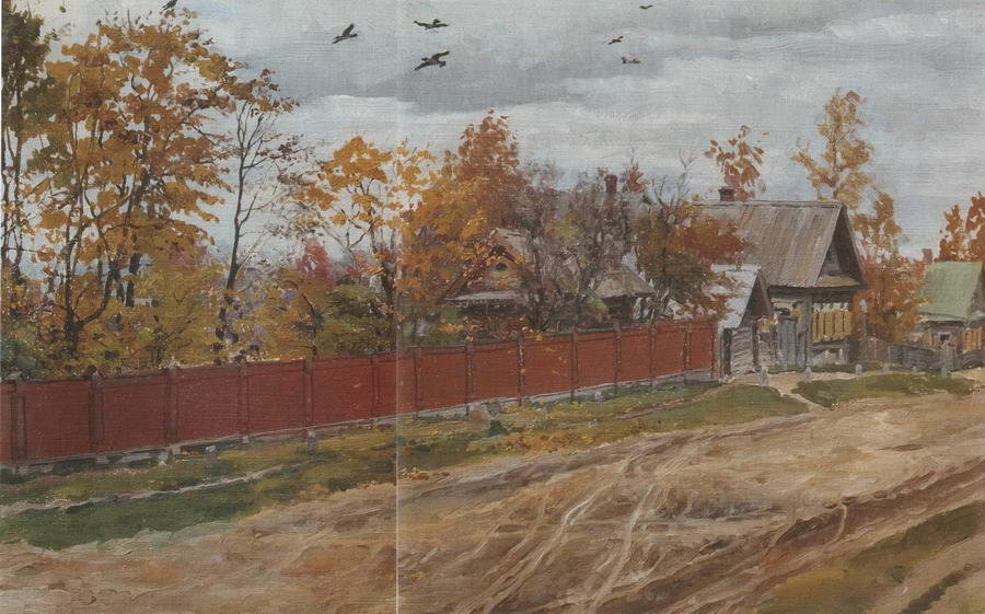 В следующем, 1886 году Елена Поленова еще чаще приезжала в Абрамцево в зимнее время работать на пленэре. «Так удивительно, хорошо, разнообразно и красиво зимой в деревне, что я этого прежде и представить себе не могла», - признавалась художница, наезжая в зимнее Абрамцево еще с большим удовольствием, чем летом. Трепетным восторгом перед красотой зимнего пейзажа в деревне проникнута акварель На дворе зимой. Зимнее солнце ясного морозного дня золотит небосклон, дивные лесные дали, ветви ближайших деревьев и обычных деревенских построек. Одухотворяя и поэтизируя повседневную жизнь, ее связь с природой, художница передает в этом пейзаже ощущение гармонии и красоты мироздания. Пейзаж звучит как возвышенная и торжественная музыка. Про него можно сказать: это музыка, застывшая в красках, столько в нем звучности колорита. На дворе зимой - одна из тех работ Е.Д. Поленовой, которую сразу приобрел для своей картинной галереи знаменитый коллекционер П.М. Третьяков, что очень вдохновило художницу. С 1881 по 1890 год Елена Поленова написала около трехсот акварельных пейзажей и этюдов. Художница участвовала в семи акварельных выставках в Петербурге и Москве, а также экспонировала свои работы на Московской периодической выставке, Московской выставке этюдов и рисунков, на выставках Общества поощрения художеств в Петербурге и выставках Общества любителей художеств в Москве. Картины Поленовой, выполненные акварелью, пользовались огромной популярностью не только у любителей, но и у искушенных коллекционеров и меценатов. Их приобретали для своих собраний и картинных галерей С.И. Мамонтов, П.М. Третьяков, Н.П. Боткин и другие. Многие акварели писались Поленовой во время путешествий по России. Неоднократно она бывала в Костроме. Костромичами были далекие предки Поленовых. В Костроме жила Прасковья Дмитриевна Антипова, ее лучшая подруга, постоянный адресат ее доверительных писем, приоткрывающих завесу творческих исканий художницы. В 1888 году Елена Поленова под впечатлением своей поездки в город на Волге создает один из самых очаровательных своих пейзажей Улица в Костроме. Художница облюбовала уютную улицу старинного русского города. Если в этюде Калитка тропинка среди алых цветов и нескольких елей манит к бревенчатому забору, заставляя зрителей домысливать все, что может таиться за ней, то в картине Улица в Костроме широкая дорога вдоль бревенчатых домиков и невысокий палево-коричневый забор лишь подчеркивают красоту осеннего пейзажа. Художница тщательно вырисовывает небольшие деревянные домики с покатыми крышами и деревянными ставнями, которые утопают в роскошном золоте и багрянце осенних садов. Сохранившаяся зелень травы и кустов великолепно сочетается с зеленью крашеных крыш, а золото листвы - с распахнутыми желтыми ставнями, как будто напоминая о возможности гармонии красоты мироздания и человеческой жизни. И над всем этим чарующим великолепием в серо-жемчужном осеннем небе, распластав крылья, грациозно парят птицы.