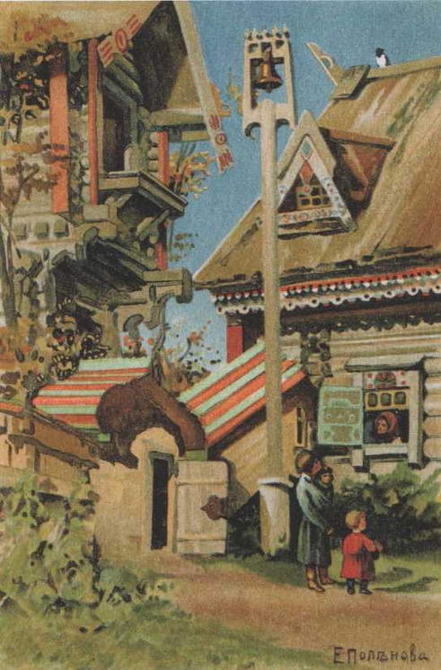Прекрасны и деревянное крылечко с северной резьбой и коньком, на котором хозяйка приглашает гостей, и водная гладь, по которой скользят суденышки, и голубоватолиловая дымка горизонта в прибаутке Сорока-ворона. Чудесны полукруг солнца и оба персонажа в присказке Рыжий и красный. Все названные выше сказки, присказки и прибаутки были изданы только после смерти художницы, в 1906 году, московским издательством Гроссман и Кнебель в трех книжках под названием Русские народные сказки и прибаутки, пересказанные для детей и иллюстрированные Е.Д. Поленовой. Цветные репродукции с иллюстраций художницы были сделаны фирмой Брукман в Мюнхене. Не переиздававшееся более ста лет, это издание, интересное как для детей, так и для взрослых, стало давно библиографической редкостью. Кроме того, в него не вошли текст сказки Жар-птица, написанной Еленой Поленовой в 1896-1897 годах, и сделанные к ней три превосходные иллюстрации, а также текст и иллюстрации к сказке Лисица, кот и петух, прибаутки Пенья-коренья, Сашка и Николашка. Все они еще ждут своего часа. К.Ф. Юон, справедливо оценивая несравненный талант Поленовой-иллюстратора, писал: «Рисунки Елены Дмитриевны Поленовой к русским сказкам - чарующие документы о русских детях и о русской народной душе. В них слышен голос русской матери, доброй бабушки и любимой няни... Их правдивый язык делает их близкими каждому русскому в той же мере, как поэзию Пушкина или музыку Чайковского».