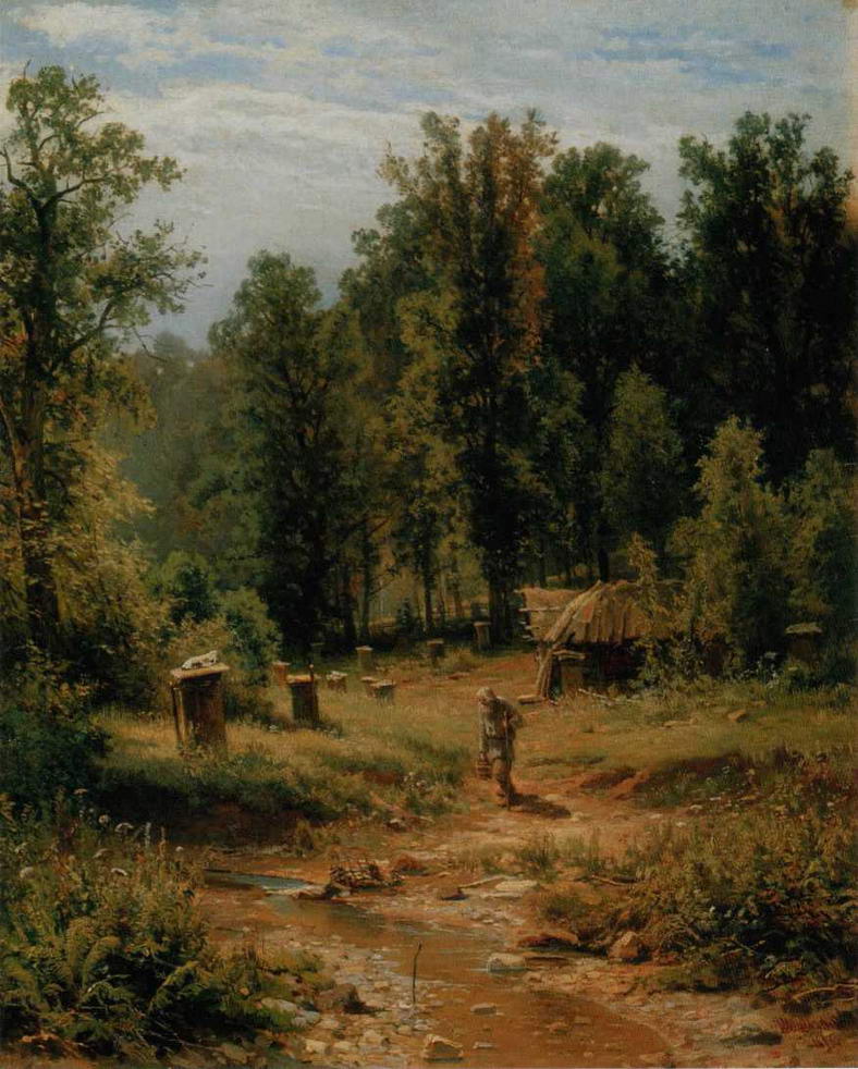«Он влюблен во все своеобразие каждого дерева, каждого куста, каждой травки, и как любящий сын, дорожащий каждою морщиною на лице матери, он с сыновней преданностью, со всею суровостьюглубокой искренней любви передает в этой дорогой ему стихии лесов все, все до последней мелочи, с уменьем истинно классическим». А.В. Прахов