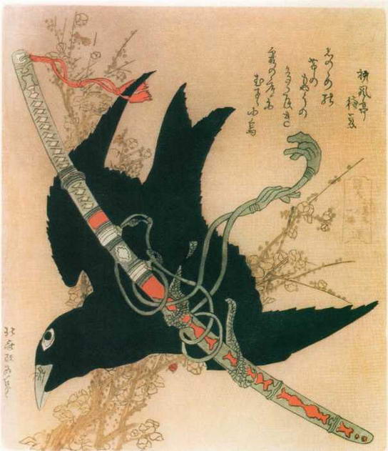 Маленький ворон, несущий саблю. 1800-е Суримоно