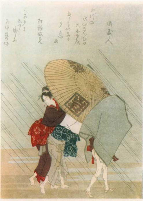 Ойран, стоящие у изгороди. 1796-1797 Суримоно