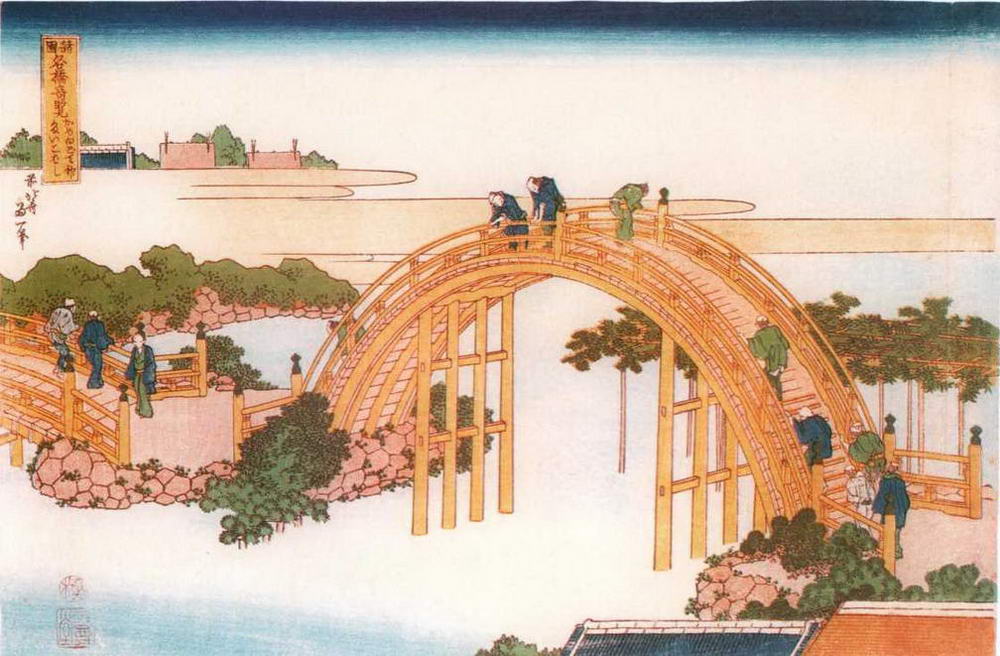 Горбатый мост храма Камэйдо Тэндзин Из серии Виды замечательных мостов различных провинций. 1827-1830