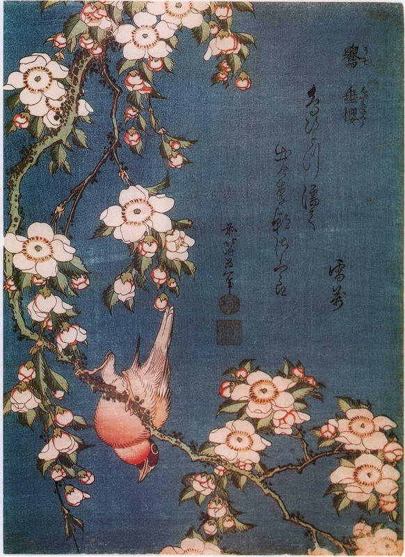 Сакура и снегирь. Около 1834 Из серии Малые цветы
