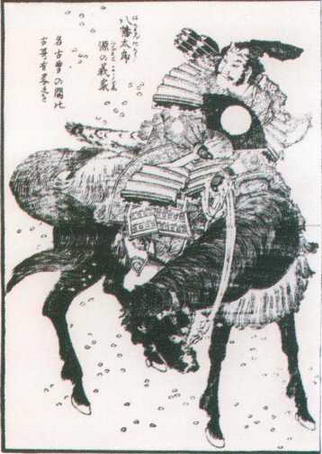 За свою долгую, почти столетнюю жизнь Хокусай сумел проявить себя как художник, мыслитель, поэт и смелый экспериментатор во всех сложившихся в это время видах и жанрах гравюр. И хотя лучшие его произведения, относящиеся к пейзажному жанру, были созданы в двадцатых - начале тридцатых годов, до последних дней не ослабели творческие силы художника. Почти на закате жизненного пути, в пору скитаний в далекой провинции он создал еще несколько значительных серий, в которых ярко проявились его мощный темперамент и неудержимая фантазия. Сам мастер в предисловии к иллюстрированной им повести Стремена Мусаси так охарактеризовал свое творчество: «Мне посчастливилось писать сильных и мужественных людей старых времен». Историческая тема волновала японских художников с давних пор. Интерес к великим подвигам прошлого, к своей истории, воплощенной в легенду и повествующей о кровавых сражениях средневековых могущественных кланов XII столетия - Минамото и Тайра, воспитывался поэзией, прозой, спектаклями театра Кабуки, равно как и гравюрой укиё-э, дававшими неиссякаемую пищу эмоциям горожан. Хокусай стремился найти эстетический идеал в героях и подвигах древности. Поэтому историко-легендарная тема стала важнейшей в его позднем творчестве. Но, как ему было свойственно, он воспринял и интерпретировал ее по-новому. В отличие от многих художников своего времени, которые воспринимали историю через спектакли театра Кабуки, уподобляя действие театральной сцене, Хокусай сосредоточил свое внимание на внутренней стороне образа, представив своих легендарных героев в виде духов природы - гигантов, подчиняющих себе пространство, олицетворяющих стихии. Так, в листах иллюстрированного им альбома Герои Китая и Японии он гипертрофировал формы гигантской птицы и огромной рыбы, с которыми вступают в единоборство герои.