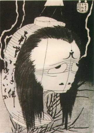 Сказочный характер этих гравюр перекликался с фантазией иллюстраций, сделанных мастером к народным легендам о существах потустороннего мира, таким, как Сто рассказов о привидениях. В этой серии выявились глубинные средневековые истоки творчества Хокусая, воспитанного с детства на фантастических историях, верящего во все необычное, колдовство, оборотней, столь прочно угнездившихся в сознании японского народа. Призраки не менее реальны для Хокусая, чем живые люди. В его гравюрах они обретают достоверность, материализуются, соответствуют принципам яркой театральной декоративности. Бумажный фонарь, превратившийся в череп Оива, героини драмы Цуруя Намбоку Ецуя Кайдан, поставленной в театре Кабуки, сообщает призраку убедительность и одновременно жуткую ирреальность, соединяя два мира - воображаемый и действительный. Фонарь-лицо лишен подбородка, но зато наделен огромными пустыми глазницами, зловеще сверкающими на лице злодейски убитой юной женщины, отравленной отцом возлюбленной ее мужа. Бледный свет, струящийся изнутри фонаря, озаряет ее бумажное лицо. Столь же выразительна и другая гравюра Призрак служанки, повествующая о жестоком убийстве девушки, разбившей хозяйские тарелки и брошенной за это в колодец. Хокусай изобразил ее призрак в виде медленно выползающего из недр колодца бледного женского лица, покачивающегося на невероятно длинной змеиной шее, унизанной тарелками. Художник создал в этих гравюрах особую атмосферу театральности. Он вывел свои персонажи из мира реальности, помещая их в мир сценический, интуитивно угадывая особую волнующую атмосферу театральных эффектов, сочетая темный иссиня-черный фон со светлым почти светящимся желтоватым ликом призрака, нагнетая атмосферу жути показом замедленных ритмов его движений. Иначе, но с той же долей яркой фантазии строится художником колорит другой его серии Сборник ста поэтов в пересказе няни, выпущенный мастером в свет в 1835 году. Он основан на сложной и детально разработанной цветовой композиции, во многом приближающейся к живописи. Хокусай создал здесь вольную интерпретацию классической поэзии и дал простонародное ее толкование. Овеянный романтикой Средневековья язык лирической поэзии мастер соединил с прозаически-жанровой трактовкой образов горожан, придав всему действию подчеркнуто декоративную яркость, усилив сочетанием броских анилиновых красок живую активность образов людей и динамику пейзажа.