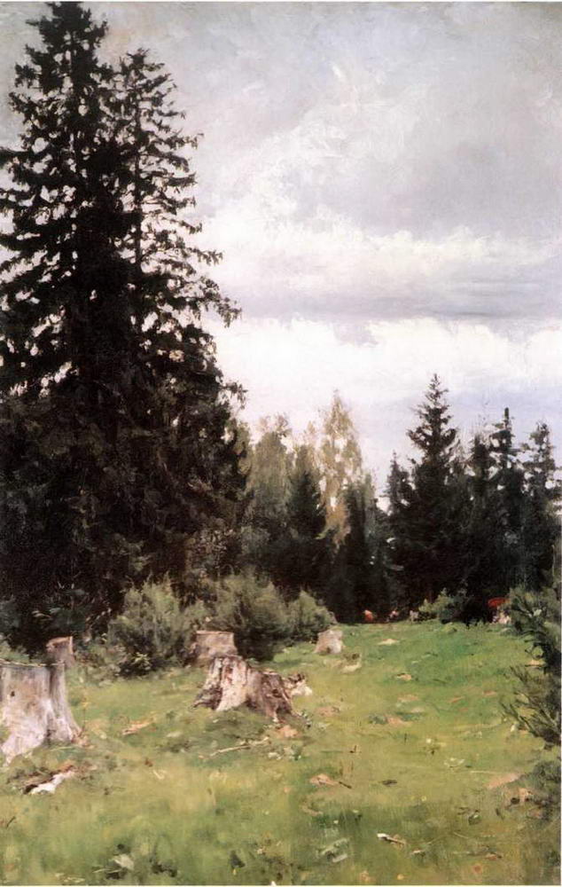 Однажды, показывая Грабарю свой первый большой пейзаж Заросший пруд, так непохожий на пейзажи передвижников, Серов, уже знаменитый своими портретами, заметил: «Я все-таки немножко и пейзажист». Так сложилось, что пейзажистом Серов был действительно «немножко». Он писал пейзажи «для себя», обыкновенно на отдыхе, у себя на даче в Финляндии или в Домотканове, имении своего друга Дервиза. Калейдоскоп лиц, столичный шум и суета, нагруженность разного рода психологическими и эмоциональными проблемами, неизбежными при работе над заказными портретами, - вся эта атмосфера может объяснить принципиальный «антипсихологизм» серовских пейзажей. Серов искал в пейзаже возможности жить, так сказать, «в отпускном режиме», поскольку именно здесь искусство изобразительности существует свободно,вне отягченности грузом психологической проблематики. Пейзаж - это отображение реальности, противопоставленной человеку. Человек и природа, человек и мироздание — собственно,это и есть тема любого пейзажа; это антитеза, которая проявляет понимание художником места человека в мире с наибольшей отчетливостью. С того момента, когда русский пейзаж сложился в своей национальной самобытности, он имеет одну особенность - «невидность», простоту мотива. Природа в картинах русских художников незатейлива, невзрачна, и в этой невзрачности, «смиренной наготе» виделось ее, русской природы, особое достоинство, до которого непонятлив «гордый взор иноплеменный» (Тютчев).