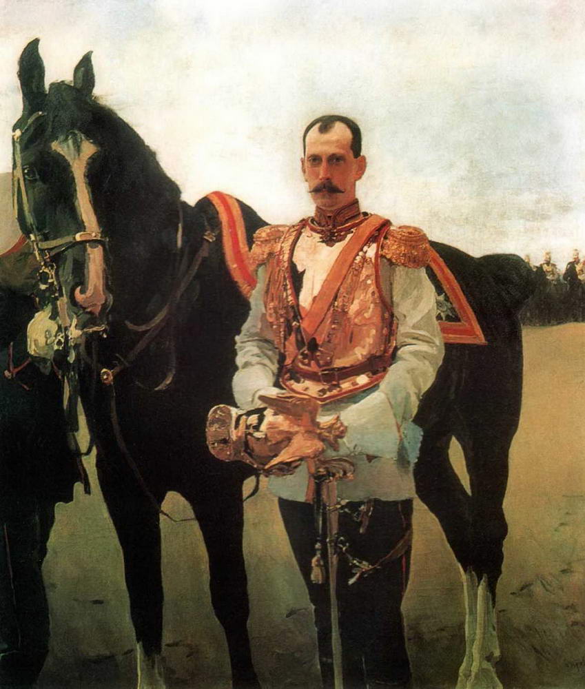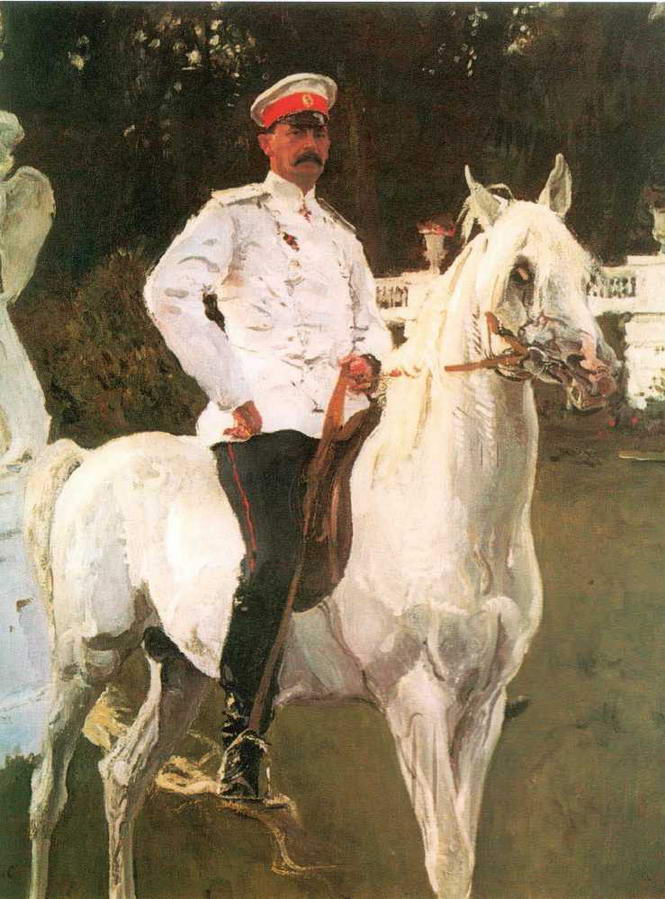 В 1892 году Серов по рекомендации Репина получил от харьковского дворянства заказ на большую картину, изображающую императора Александра III и его семью в момент вступления в зал харьковского Дворянского собрания. Работа над картиной, вместе с этюдами, заняла три года. Императора Серов писал в основном по фотографиям, лишь раз получив возможность наблюдать царя «в натуре». «Серова предупредили, что царь будет с ним говорить в течение нескольких минут при выходе в сад на прогулку, - вспоминал Дервиз. - Валентина Александровича поставили на лестнице, которая была совершенно пуста. Неожиданно отворилась дверь, и Александр III вышел на лестницу один. Либо он забыл о назначенной встрече, либо его о ней не успели предупредить, но когда он увидел незнакомого человека, лицо его приняло выражение недоверия, страха, холода и враждебности. В это время вошел кто-то из свиты и объяснил царю, кто это, и тот любезно разговаривал с Серовым минут пять. Валентин Александрович говорил мне, что этого выражения, виденного в первую минуту на лице Александра III, он никогда не мог забыть...» Этот эпизод передает ту атмосферу жестко регламентированной «жизни напоказ», которая царила при императорском дворе, как и в великосветских кругах. Здесь кстати заметить, что Серов по своему душевному и творческому складу менее всего был приспособлен к амплуа «придворного портретиста». Мемуаристы вспоминают экстраординарный случай во время работы Серова над портретом императора Николая II: «Царица попросила царя принять свою обычную позу и, взяв сухую кисть из ящика с красками, стала внимательно просматривать черты лица на портрете, сравнивая их по натуре и указывая удивленному Серову на замеченные ею мнимые погрешности в рисунке. - Тут слишком широко, здесь надо поднять, там опустить. Серов, по его словам, опешил от этого неожиданного урока рисования, ему кровь ударила в голову, и, взяв с ящика палитру, он протянул ее царице со словами: - Так вы, ваше величество, лучше сами уж и пишите, если так хорошо умеете рисовать, а я больше слуга покорный». И царю пришлось извиняться за неловкую супругу.