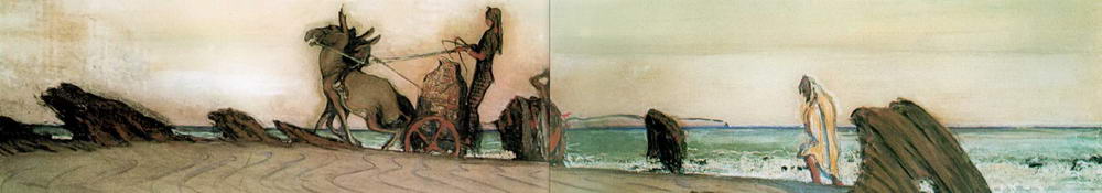 Серов воспринимал свое амплуа портретиста в известной мере как проклятье редкой творческой способности (дар портретиста - редчайший дар) и как фатальное стечение обстоятельств, и было бы странным, если бы художник, ощущающий себя мастером универсальным, способным работать в разных жанрах (и таким он и был по возможностям своего мастерства), не сделал попытки прикоснуться к «вечному» источнику творческого вдохновения, каким была во все времена античность - либо как мир мифологии, питающей художественное воображение с древности, либо как мир античной скульптуры, пластического совершенства. Получилось так, что картины античного цикла - последнее специфическое новшество, которым завершается творческий путь художника, как бы точка его творческой эволюции. Поэтому эти произведения приобретают высокознаменательный характер, как если бы Серов, предчувствуя конец жизненного странствия и окинув взором свой творческий мир, увидел, что в нем отсутствует то вечное и всеобязательное, на чем испытываются красота, совершенство, проницательность художественного интеллекта, - отсутствует античная тема, - и решил придать своему художественному миру законченность и поставить его перед лицом художественного опыта, той художественной реальности, какой является античное мифотворчество. В 1907 году Серов вместе со Львом Бакстом совершил поездку в Грецию и на Крит, где художники изучали раскопки английского археолога Эванса, обнаружившего руины Кносского дворца. - открытие, в очередной раз изменившее представление о греческой цивилизации. Хотя первые наброски античных сюжетов делались Серовым сразу по возвращении из путешествия, лучшие, концептуально выговоренные произведения античного цикла - варианты картин Похищение Европы и Одиссей и Навзикая - относятся к 1910 году: античная тема словно «ждала своего часа», как если бы эхо внешних впечатлений должно было пройти какой- то путь, чтобы достичь недр художественного мира Серова и там откликнуться и получить свою долю в творческом внимании мастера. Миф о Европе принадлежит к «первомифам». Европа - изначально хтоническое божество, связанное с культом земли и подземного мира. Этот миф связан с крито-микенской культурой, открытие которой произошло как раз в начале XX века. Внимание культурного мира было приковано к этому открытию, отодвинувшему греческое искусство глубоко в древность, и сам образ античности «редактировался» в соответствии с новыми представлениями. Увидеть античность в свете недавних открытий было интересно и заманчиво, и Серов реализовал именно эту возможность. В картине Одиссей и Навзикая воспроизводится эпизод, когда потерпевший крушение Одиссей очутился на острове феаков, сказочного народа, пребывающего в мире потустороннего блаженного бытия, как бы в пространстве сна.
