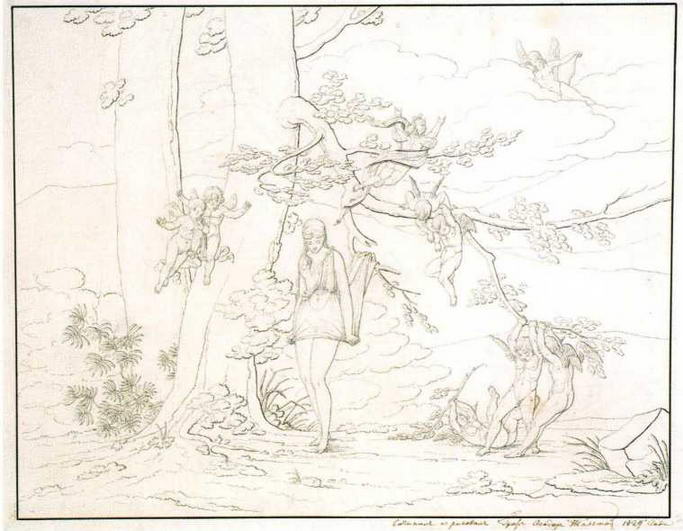 Ветви дуба опускают на землю Душеньку, тщетно пытающуюся умереть. 1829