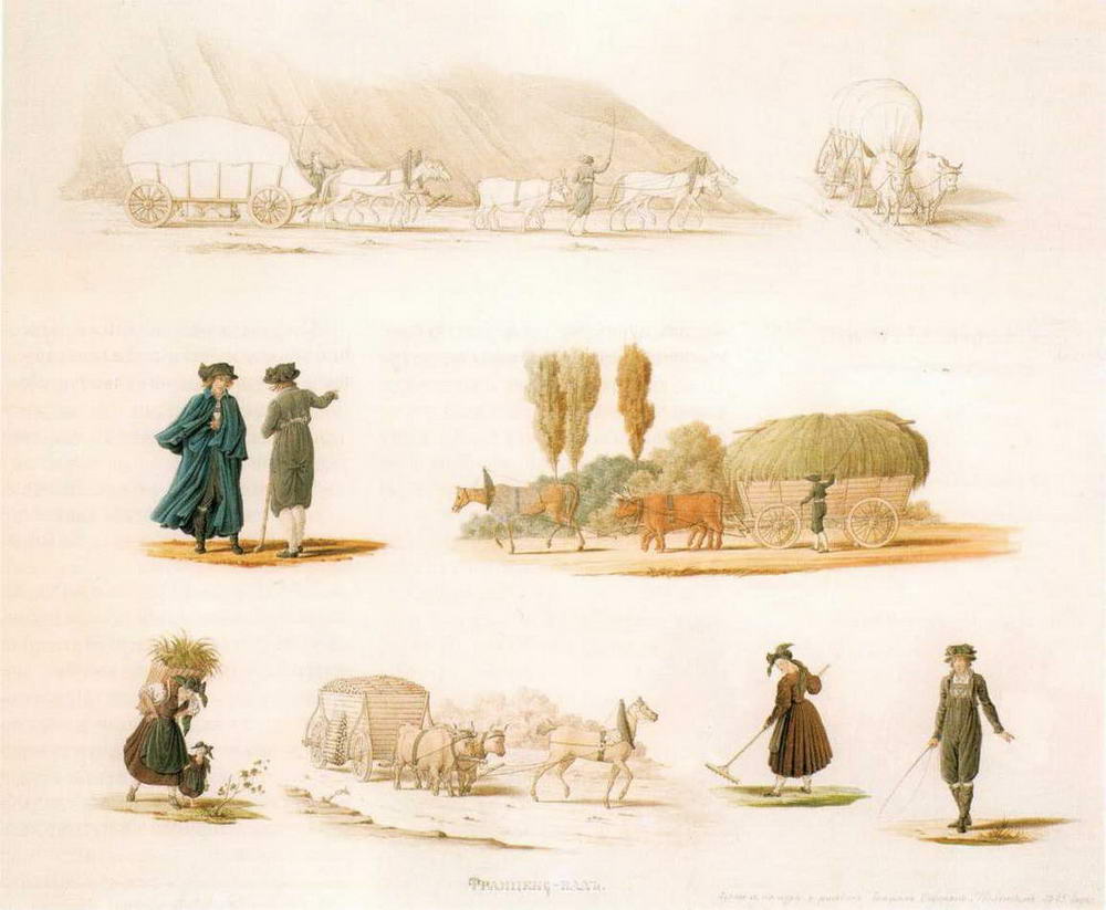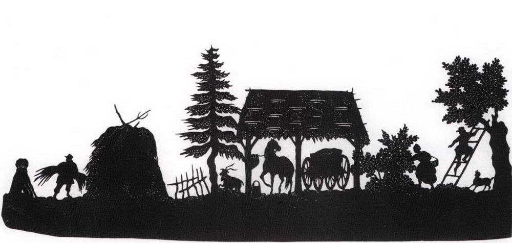 Голые ветви деревьев, елочки, торчащие жерди плетней, полуразвалившиеся мостики, неспешно бредущая лошадь, тянущая сани с сеном, несущиеся по зимним дорогам тройки лошадей - таков зимний облик русской природы, запечатленный Толстым. А летом в силуэтах Толстого мужики и бабы деловито убирают сено, пасут коров, собирают яблоки,забираясь по лестницам на высокие яблони. Девушка набирает воду в колодце, рыбаки вытягивают сети. Любители рыбной ловли неподвижно сидят на берегу реки с удочками, а их жены и дети терпеливо наблюдают за ними, стоя поодаль на берегу. Пастух играет на дудочке, парень и девушка весело отплясывают на лугу или в избе на посиделках. "Мужик был в его глазах не холоп, которого можно презирать, - вспоминала дочь Толстого, - и не идеал, перед которым надо преклоняться, даже не меньший брат, а просто человек, такой же, как и он сам". Независимыми, ловко управляющимися со своими делами предстают в силуэтах художника крепостные крестьяне, собирают ли они яблоки, вытаскивают ли сети или самозабвенно пляшут.