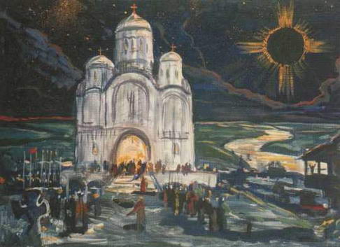 Преображенный Китеж. Эскиз декорации к опере Н.А. Римского-Корсакова Сказание о невидимом граде Китеже и деве Февронии. 1983