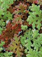 Ricciocarpus natans Семейство риччиевые – Ricciaceae. Ближайший родственник риччии, интересный представитель печеночных мхов, реже встречается на территории нашей страны. Содержат в «парниковых» условиях палюдариума, так как растению необходим влажный воздух. Светолюбиво. Верхняя часть – сухая, находится в воздушной среде. Пластинки листа овальные, сердцевидные, с «клювиком» ярко-зеленого цвета. В них образуются треугольные почки, из которых вырастают дочерние растения. Лист наполнен аэрокамерами, снизу покрыт длинными фиолетовыми чешуйками, похожими на корешки. Аквариум лучше всего прикрыть стеклом для создания влажной среды.Риччия плавающая