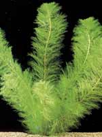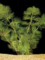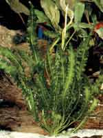 Ceratophyllum spec. Семейство роголистниковые – Ceratophyllaceae. Родина его – Куба. Похож на плотную и густую гроздь, составленную из сильноветвящихся побегов. Корней не имеет. Многолетняя плавающая в воде трава, зимой не отмирает, а продолжает вегетацию. Стебель нехрупкий, красноватого цвета. Если растение находится в ярко освещенном аквариуме, то образуются короткие междоузлия. Ветвь формируется пушистая, плотная. Довольно быстро растет в длину. При ярком освещении и температуре более 25 °С за месяц вырастает в длину более метра. Затем начинает куститься. В аквариуме, где растет кубинский роголистник, необычайно чистая вода. Является -активным ассимилятором растворенных в воде органических и неорганических веществ. Кислород, выделяемый большой биологически активной поверхностью, способствует быстрому окислению органических остатков от жизнедеятельности рыб. Может быть использован как интереснейший декоративный элемент в аквариуме голландского типа.Роголистник темно-зеленый