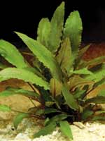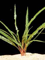 Родина его – северо-западная часть о. Мадагаскар. Крепкое растение с широкими, прозрачными коричнево-зелеными листьями, которые в зависимости от условий содержания могут быть слегка волнистыми. Рекомендуется только для больших аквариумов. Цветет обильно, более результативным является перенос пыльцы с одного экземпляра на другой, хотя бывает достаточным и самоопыление. Освещение любит сильное, рассеянное, комбинированное. Температуру предпочитает зимой 18-20°С, в остальное время – выше 25°С.