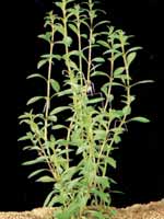 Эторастение также называют «индийская звездочка». Очень популярное у аквариумистов длинностебельное растение с овальными светло-зелеными листьями. Его стебли могут достигать значительной длины. Выращивать гигрофилу можно в аквариуме любого объема, размещая на заднем плане. В аквариуме она растет равномерно в течение всего года. Содержать растение лучше в тропическом аквариуме при температуре 24-28 °С. При температуре воды ниже 22 °С она растет плохо. Вода мягкая, слабокислая. При жесткости больше 8° рост ухудшается, нижние листья распадаются, верхние становятся мелкими. Необходима регулярная подмена воды. Освещение должно быть яркое, на это указывает светло-зеленая окраска листьев. Для освещения аквариума можно использовать как естественный, так и искусственный свет. Если солнечный свет падает прямо на аквариум, гигрофилу следует притенять. Для искусственного освещения лучше подходят люминесцентные лампы типа ЛБ, но можно использовать и лампы накаливания; рассчитывая мощность осветителей, нужно исходить из следующей пропорции: 0,4-0,5 Вт на 1 л объема для люминесцентных ламп. Мощность ламп накаливания должна быть примерно в три раза больше. Продолжительность светового дня – не менее 12 часов. При недостаточном освещении листья становятся значительно мельче, а стебель начинает сильно вытягиваться. Для выращивания гигрофилы многосеменной подходит слабозаиленный грунт, состоящий из крупного песка или очень мелкой гальки. Дополнительная подкормка не требуется, растению вполне хватает естественного заиливания грунта. Если растений в аквариуме много и они быстро растут, их нужно подкармливать комплексными минеральными удобрениямн. При еженедельной подмене воды на 10 л вносится 1,5-2 г удобрений. Гигрофила очень легко размножается черенкованием стебля. При этом части стебля, имеющие 4-5 мутовок листьев, надо сразу высаживать в грунт, заглубляя нижнюю пару листьев. Корневая система образуется очень быстро. Выращивать гигрофилу плавающей в толще воды нельзя, так как ее корневая система принимает активное участие в поглощении питательных веществ и вне грунта развивается очень плохо. Листья у плавающего растения мельчают, и его рост замедляется. Как и другие виды гигрофил, многосеменная гигрофила является болотным растением и может успешно выращиваться в палюдариуме и во влажной оранжерее. Выращивание в воздушной среде не представляет большого труда: во влажнвй атмосфере на достаточно питательной почве при ярком освещении растение развивается очень быстро.