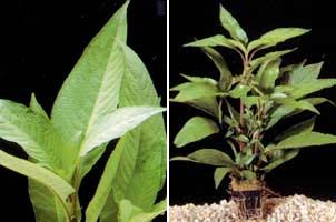 Длинностебельноесравнительно нетребовательное растение, очень популярное благодаря красивой окраске листьев – от розово-зеленой до лилово-красной. Хорошо растет как в глубоком аквариуме, так и во влажной оранжерее. Под водой равномерно растет в течение всего года. Альтернантера хорошо себя чувствует при температуре воды ов 22 до 28 °С. В более холодной воде ее рост резко замедляется. Жесткость и активная реакция воды существенного влияния на состояние растения не оказывают, однако более предпочтительна мягкая вода со слабокислой реакцией. В ней альтернантера развивается несколько быстрее. Необходима прдмена до 1/5 объема воды 3-4 раза в месяц. Освещение должно быть достаточно яркое. От его интенсивности зависит окраска листьев – чем ярче освещение, тем более в ней преобладают красные тона. Для альтернантеры подходит как естественное, так и искусственное освещение. Для искусственного освещения предпочтительна комбинация ламп накаливания и люминесцентных ламп. Люминесцентные лампы типа ЛД применять не следует, так как спектр излучаемого ими света не совсем устраивает растение. Корневая система альтернантеры развита слабо, поэтому характер грунта для нее существенной роли не играет. Использовать можно любой субстрат, но в крупном песке корни растения развиваются лучше. Заиленность должна быть умеренной или слабой. Толщина слоя грунта в аквариуме может быть любой, даже двухсантиметрового слоя песка вполне хватает для удовлетворительного роста альтернантеры. Альтернантера сидячая очень легко размножается черенкованием. Длинные стебли, достигающие поверхности воды, надо обязательно укорачивать, удаляя верхушку, которую сажают непосредственно в грунт, заглубив нижнюю мутовку листьев. Через несколько дней у растения образуются корни. Длинные стебли можно разделить на несколько частей, причем каждый черенок должен иметь 3-4 мутовки листьев. Его можно сразу высаживать в грунт, не оставляя на поверхности воды и не ожидая появления корней в пазухах листьев. Черенки, оставленные плавать, растут хуже, чем посаженные в грунт. В условиях влажной оранжереи альтернантера сидячая растет заметно быстрее, но в значительной мере теряет свою привлекательность. Переводить растения из подводной формы в надземную надо постепенно. Посаженное в неглубокий аквариум, растение легко образует воздушные побеги, которые можно отделить и посадить в затопленный или очень влажный грунт. В оранжерее для этого растения можно использовать садовую землю, значительную часть которой составляют песок и торф. Температура воды (почвы) и воздуха должна быть в пределах 26-30 °С, освещение – очень яркое. Выращенная в наземных условиях альтернантера очень легко переносит затопление. Растение можно практически безболезненно высадить в грунт глубокого аквариума, где через короткое время его рост продолжится.