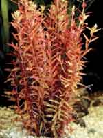 Длинностебельное растение, способное расти и в аквариуме, и в условиях влажной оранжереи. У аквариумистов встречается сравнительно редко. Отдельные веточки роталы, выращенной в воде, выглядят неказисто. На стеблях, достигающих в аквариуме 20-25 см, попарно сидят нежные светло-зеленые вытянутые листочки длиной около 1 см. Однако большой куст выглядит очень эффектно и удачно сочетается с крупнолистными растениями. Размещают роталу ближе к боковым стенкам. В аквариуме она растет круглый год. Содержать роталу лучше всего в тропическом аквариуме при температуре выше 24 °С. При более низкой температуре это растение, медленно развивающееся в воде, практически прекращает рост. Вода должна быть мягкой или умеренно жесткой. Ротала лучше всего чувствует себя в воде общей жесткостью менее 6°, а если жесткость превышает 12°, она скоро гибнет. Активная реакция воды предпочтительна нейтральная или слабокислая. В щелочной воде растение развивается неудовлетворительно. В аквариуме необходимо поддерживать чистоту, регулярно подменивать 1/5-1/4 объема воды. Появление в воде мути приводит к ухудшению внешнего вида растения и замедлению его роста. Освещение должно быть умеренно яркое. При недостатке света ротала вытягивается и выглядит слабой и бледной. Избыток освещения может привести к появлению водорослей, которые губительны для растения. Подбирать освещение надо индивидуально, учитывая, что растение выдерживает умеренное затенение. Ориентироваться можно на окраску молодых листьев, которая при благоприятных условиях приобретает розоватый оттенок. Очень полезна подсветка лампами накаливания в сочетании с рассеянным естественным светом или освещением люминесцентными лампами. Продолжительность светового дня должна быть около 12 часов. У роталы, выращиваемой в аквариуме, корневая система развита слабо. Растение можно высаживать в грунт-тогда оно приобретает более эффектный вид, а можно оставлять плавающим в толще воды. Выращиваемому в грунте растению вполне хватает для питания естественного ила. Плавающее растение, получающее питание только из воды, развивается медленнее. Как уже говорилось, роталу можно успешно выращивать в палюдариуме и во влажной оранжерее. Часть стебля, взятую из аквариума, высаживают в грунт, покрытый водой. В таких условиях ротала формирует упругие надводные побеги с круглыми глянцевыми листьями и цветет. Воздушные побеги при благоприятных условиях растут очень быстро. Для роталы нужна высокая влажность, высокая температура воды и воздуха (26-30 °С), яркий свет. Взятое из оранжереи растение можно сразу переносить в аквариум. После короткого перерыва оно продолжает расти, формируя побеги с листьями удлиненной формы.