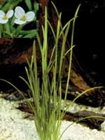 Sagittaria spec. Семейство частуховые – Alismataceae. Привезен в нашу страну из Голландии в начале 80-х годов. Нежное, очень низкорослое растение образует густые заросли. Высота кустов в обычных условиях не более 10 см. Растение пригодно для содержания в аквариуме любого объема. Размещают сагиттарию на переднем плане. Растение очень неприхотливое, но пока еще мало распространено у аквариумистов. Растет оно в аквариуме равномерно в течение всего года. К температурным условиям сагиттария нетребовательная и удовлетворительно растет при температуре от 18 до 28 C, хорошо выдерживает длительное снижение температуры до 12-14 °С. Жесткость и активная реакция воды практического значения не имеют, одинаково хороший рост наблюдается как в очень мягкой, так и в жесткой воде. В аквариуме необходимо поддерживать чистоту. Появление мути в воде приводит к образованию налета на листьях и быстрому их разрушению. Необходимо регулярно подменивать 3-4 раза в месяц до 1/5-1/4 объема воды. Освещение может быть умеренно яркое. При недостатке света сагиттария тянется вверх, окраска листьев становится бледной, густых зарослей не образуется. При достаточно сильном освещении заросли очень плотные, низкорослые, имеющие вид ярко-зеленых дерновин. Подбирать яркость освещения надо в зависимости от потребности в нем окружающих растений. Для освещения подходит любой свет, естественный и искусственный. Источниками искусственного света могут служить любые лампы. Для грунта следует использовать мелкий субстрат, который должен быть умеренно заиленным. Если в аквариуме использована крупная и средняя галька, на переднем плане можно сделать островки песка, в которые высаживают сагиттарию. Толщина слоя песка может быть 2-3 см. Если растение посажено в крупный субстрат, заросль не может равномерно распространяться по дну. При подменах воды накапливающийся в зарослях ил следует удалять с помощью воронки. Размножать растение очень легко: из образовавшейся заросли берут дочернее растение и пересаживают его на новое место. В условиях влажной оранжереи карликовая сагиттария растет очень хорошо и выглядит так же, как растущая в аквариуме. Для выращивания ее в оранжерее пригоден любой достаточно питательный грунт. Свет должен быть яркий, а температура 24-30 °С. Взятое из оранжереи растение можно сразу пересаживать в аквариум.Стрелолист шиловидный