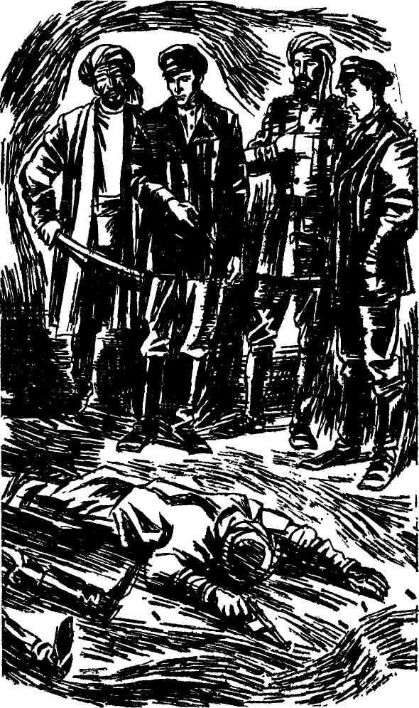 — Ну что, Сергей, не устал? — осведомился Чучин у Кузнецова. — Как-никак больше двадцати километров отмахали. — Все в порядке, — невозмутимо ответил механик. — Конь отличный. Ты ведь сам помог мне его выбрать. Прекрасный конь. Хозяин караван-сарая, несколько суетливый, но приветливый человек, встретил отряд как нельзя более радушно. Дела у него, очевидно, шли недурно — круглое лоснящееся лицо так и сияло благодушием, узкие глазки плутовато поблескивали. Узнав, что к нему прибыли русские, хозяин искренне обрадовался: — У нас бывают путешественники со всего света: и купцы, и чиновники, и паломники. Я и сам достаточно поездил за свою жизнь. Люблю встречаться с новыми людьми! Вскоре на дворе запылали костры, и запах горелого бараньего сала заполнил двор рабата. В больших медных котлах варился плов, на вертелах жарились кебабы. Хозяин старался как можно лучше принять почетных гостей, а после обеда пригласил к себе Гоппе, Чучина и Баратова и долго расспрашивал их о революции и гражданской войне, все время удивляясь и охая. Иван так и не понял, действительно ли владельца рабата интересовала так жизнь в России, или это была привычная ему манера разговора. Ночь наступила неожиданно, как это бывает только на юге. Иван отправился спать. Красноармейцы уже отдыхали, только Кузнецов примостился на ящике около конюшни и слушал песни, которые вполголоса напевал ему под гитару Антон Старосельцев. Вокруг них сидели на земле несколько афганских солдат… Может быть, в комнате было слишком душно, а может, переходы под палящим солнцем выбили ко всему привычного Ивана из колеи, во всяком случае, заснуть Чучину не удалось. Он встал, откинул келим, прикрывавший нишу в стене, достал глиняный кувшин и кружку, налил воды. Вода была холодная, но чуть сладковатая. Напившись, Иван поправил разостланное на ковре одеяло, и тут до его слуха донесся звук шагов. Кто-то крадучись пробирался вдоль стены. Шаги приближались. Иван открыл дверь. У порога жался смертельно перепуганный Файзулла. Он сильно дрожал и что-то быстро-быстро говорил. Иван нехотя пошел будить переводчика.