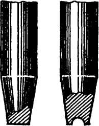 Чтобы закладная головка заклепки не смялась, ее помещают в углубление, высверленное в металлической болванке или обжимке, как показано на рисунке 91. Высверленные углубления по диаметру и профилю должны соответствовать размерам головки заклепки. В сквозное отверстие скрепляемых деталей вставляют снизу заклепку, помещая ее головку в соответствующее углубление болванки. Выступающий стержень заклепки не должен превышать 2–3 миллиметров. Лишнюю часть стержня откусывают кусачками. Заклепки с плоскими головками расклепывают заостренной частью легкого молотка. Наиболее удобными являются алюминиевые или медные заклепки.