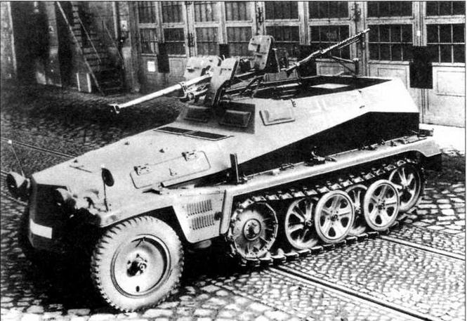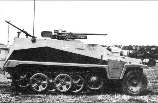 «Задача пехоты состоит в том, чтобы немедленно использовать эффект танковой атаки для быстрого продвижения вперед и развития успеха до тех пор, пока местность не будет полностью захвачена и очищена от противника»—это положение, выдвинутое германским танковым теоретиком генералом Г.Гудерианом еще в 1936 году, показывает, какая роль отводится пехоте при взаимодействии ее с танками. Гудериан правильно предвидел, что в условиях все возраставшей эффективности противотанкового оружия потери атакующих танков, не имевших прикрытия пехоты, будут слишком большими. Да и сам захват и удержание местности одними танками без пехоты были невозможны. Технический вопрос сопровождения танков пехотой в разных армиях решался по-разному. В Красной Армии, например, с начала 1930-х годов и вплоть до конца Второй мировой войны для этой цели использовался так называемый танковый десант—группа пехотинцев (обычно стрелковое отделение), которая располагалась непосредственно на броне танка. В Германии же, имевшей значительно более мощную автомобильную и тракторную промышленность, пошли иным путем—создавали бронетранспортеры. Эта работа облегчалась тем, что уже в первой половине 1930-х годов несколько немецких фирм приступили к проектированию целого семейства полугусеничных артиллерийских тягачей с тяговым усилием на крюке от 1 до 18 т. На их базе и планировалось создать бронированные машины для транспортировки пехоты и не только. Так, например, уже в 1934 году фирма Rheinmetall получила заказ на разработку в содружестве с фирмой Bussing-NAG бронированной полугусеничной штурмовой машины. Этот броневик, именовавшийся 7,5 с Selbstfahrlafette L/40,8 (Modell 1), был предложен в трех вариантах, различавшихся габаритами и компоновкой. На двух машинах использовалось шасси BN ЮН с кормовым расположением двигателя, на одной — BN 11V с передним. Все варианты были созданы на базе 5-тонного полугусеничного тягача, разрабатывавшегося фирмой Bussing-NAG, и оснащались открытой сверху вращающейся башней. В 1936 году создается еще одна модель полугусеничной бронированной боевой машины, опять-таки при сотрудничестве двух вышеупомянутых фирм. Машина получила официальное и, как обычно в Германии, длинное обозначение—Pz.Sfl.lll auf Fahrgestell mZgw 5t (HKp 902). Всего изготовили четыре машины, у которых 75-мм пушки были установлены не во вращающейся башне, а в неподвижной открытой сверху и сзади рубке. При массе 11 т толщина броневых листов сварного корпуса колебалась в пределах от 6 до 20 мм. Располагавшийся сзади двигатель Maybach HL45 мощностью 150 л.с. позволял этой полугусеничной самоходке развивать скорость 50 км/ч. Экипаж машины состоял из четырех человек. На вооружение этот броневик не принимался. Две из четырех изготовленных машин во время Второй мировой войны использовались войсками генерала Роммеля в Северной Африке. Еще одна, без вооружения и с переделанной полностью закрытой рубкой, служила в качестве машины управления при запуске ракет «Фау-2». Судьба еще одной машины неизвестна.
