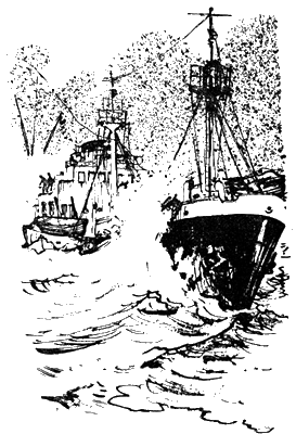 И вот я снова в Севастополе. Графская пристань. У группы моряков, первой ворвавшейся в город, нет знамени. Один из матросов снимает с себя тельняшку, привязывает ее к веревке и поднимает на флагшток. Я беру кинокамеру. В визире символический кадр: над только что освобожденным городом полощется на ветру «морская душа».КРАСНЫЕ ОГНИ В ВОЛНАХ АТЛАНТИКИ