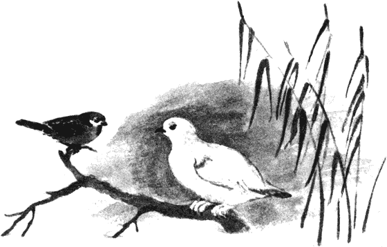 Ноябрь. Самый распространённый воробей — это воробей обыкновенный или домовый. Но живёт у нас ещё и воробей полевой. У него на голове шоколадный беретик, а на шее белый воротничок. В стайках полевых и домовых воробьёв нередко встречаются совсем или частично белые птички. Это альбиносы. Альбиносы изредка встречаются среди разных птиц и зверей. Белый цвет пера или шерсти образуется от нехватки красящего вещества — пигмента. Кроме воробья полевого и домового, живут у нас в Союзе воробьи каменные, пустынные, рыжие, черногрудые и другие.