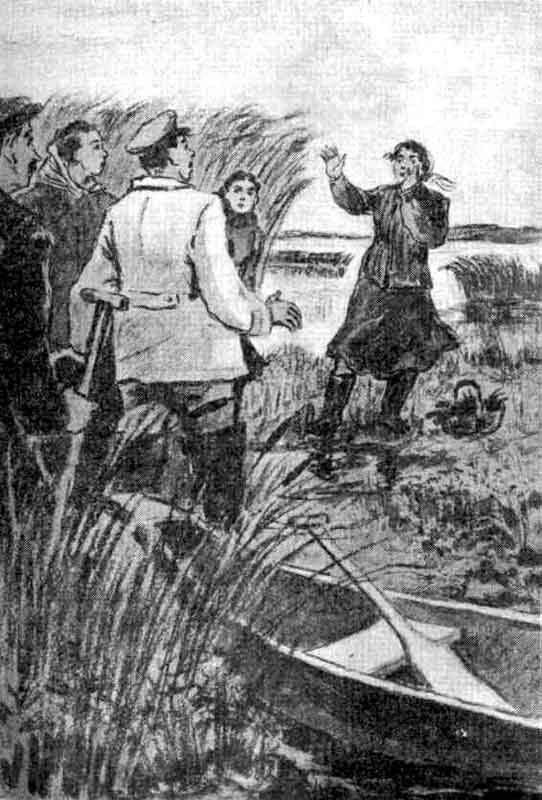 Два звена работников зверофермы выехали на широкое Тимонаихинское займище, испещрённое многочисленными озёрами и мелководными плёсами. В каждом звене две девушки, во главе одного — зоотехник Анна Переверзева, другого — сама Валентина Михайловна. Сторожа Ивана Федотова и снабженца Василия Пестрикова взяли гребцами на лодки. Долблёнка, на которой разместилось звено Покровской, причалила к берегу озера. Девушки в полуболотных резиновых сапогах, с шестом в одной руке и корзинкой в другой, выпрыгнули из лодки. Берег, образовавшийся когда-то из лабзы, теперь затвердевший и укрепившийся корнями различных растений, прогибался под тяжестью человека, под ногами хлюпала вода. Валентина Михайловна, вытащив из сумки план займища, отметила на нём красным крестиком озеро Шестиковое, такое же название написала на первой странице общей тетради и сказала: — Ну, девушки, начинаем!.. На востоке медленно поднимался большой раскалённый диск солнца, с озера дул холодный осенний ветер. Валентина Михайловна принимала от Насти Прохоровой и Зинаиды Власьевны растения, которые они собирали в прибрежной полосе и подносили ей в корзинках, классифицировала их по справочнику и атласу растительного мира, занося названия в тетрадь. Василий Пестриков тащил растения к лодке и укладывал на дно. Работа шла дружно, девушки, на первых порах боявшиеся зыбкой почвы, теперь без опаски бродили по берегу, отыскивая всё новые и новые образцы растительности и собирая семена. Когда работа подходила к концу, из камышей с противоположной стороны озера выскользнула лодка, которой правил Благинин. Увидев на берегу людей, он подумал: «Экспедиция, видно, какая-то. Геологическая, а может быть мелиоративная?» — и, заинтересовавшись, направил к ним лодку. — Девушки, смотрите: охотник! — воскликнула Настя Прохорова и, вытащив из бокового кармашка джемпера маленькое зеркальце, начала поправлять сбившиеся волосы. — Губки не забудь подкрасить, — засмеялся Василий Пестриков, — а то не понравишься. — И подкрасила бы, да губной помады не захватила, — вызывающе ответила Настя, — а тебя что, задевает?.. — Нисколько. Всегда пожалуйста… Когда лодка толкнулась носом в рогозовый курень, Благинин ловко выпрыгнул на берег и за цепь вытащил её за собой. Стряхивая с брезентовой куртки водяные брызги, поздоровался. — Добрый день! — Здравствуйте!.. — разноголосо ответили девушки. Василий Пестриков снисходительно кивнул головой. — Наверно, из лугомелиоративной экспедиции? — поинтересовался охотник. — Не угадали, — ответила Настя и ласково улыбнулась Благинину. — Из геологической? — Не-е… Из звероводческой. — Из звероводческой? — удивлённо воскликнул Благинин. — Это кого же опять, разводить думаете? — Разводить… — замялась Настя, не зная, что ответить. — Это наш начальник только может разъяснить, — и показала на Валентину Михайловну, которая стояла в стороне и что-то внимательно рассматривала в корзине. Иван обернулся туда, куда показывала Настя, чуть не вскрикнул от удивления: «Валюшка, ты ли это?»… И, вмиг забыв обо всём окружающем, стал пристально всматриваться в такие близкие, знакомые черты. Ну да, те же спускающиеся с плеч длинные белокурые косы, то же красивое открытое лицо с никогда не тускнеющим румянцем на щеках и тонким, с едва заметной горбинкой, носом. И лишь резиновые сапоги и 