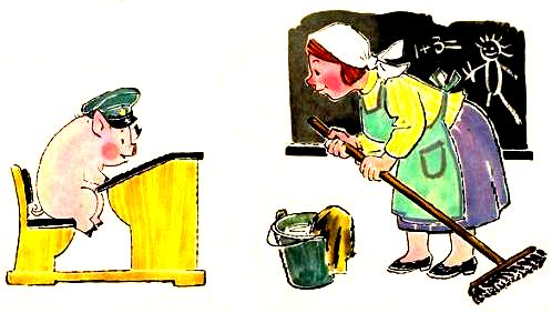 - Ох, ох, не могу! - расхохоталась тётя Маруся. - Поросёнок к доске просится!