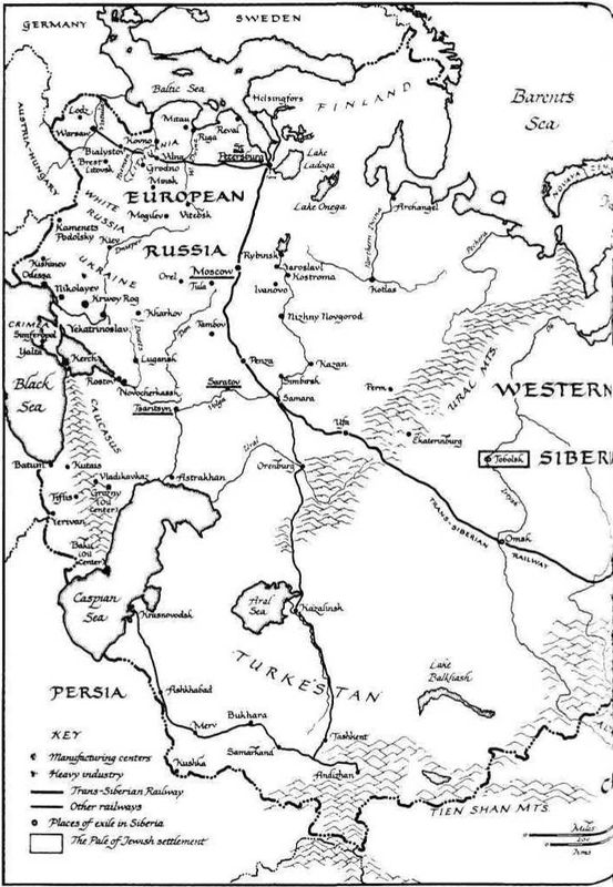 На этой карте России, составленной до Первой мировой войны, уже обозначена Транссибирская железная дорога, которой к моменту рождения Распутина еще не было. Место его рождения, село Покровское, расположено вблизи Тобольска.